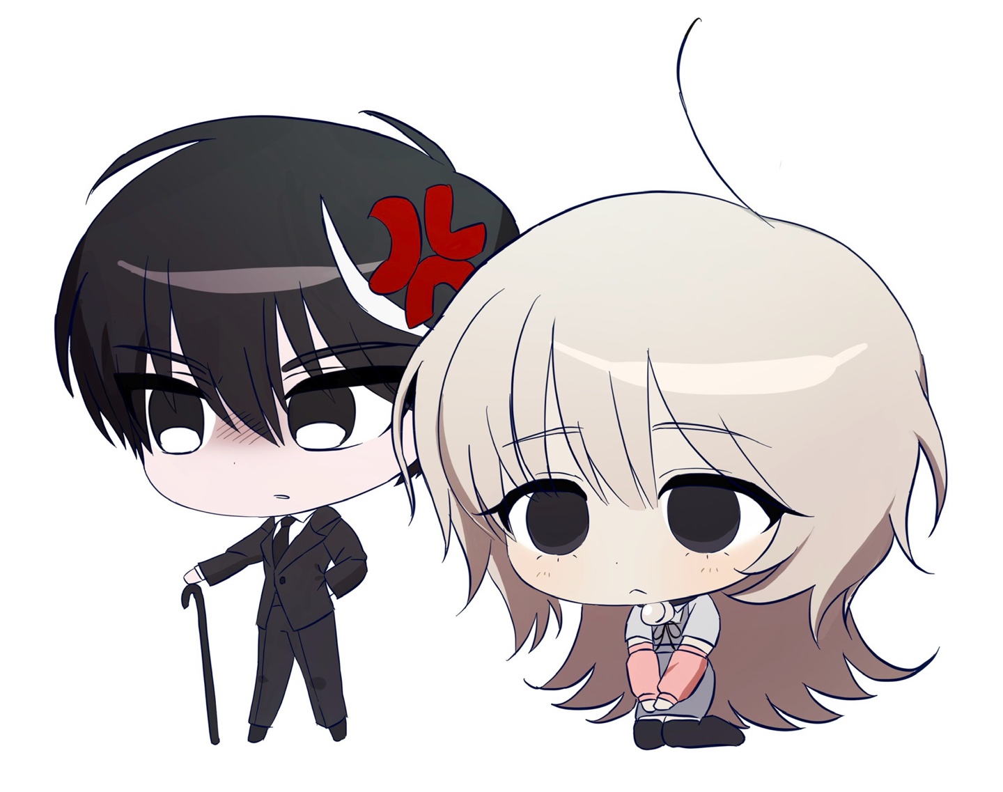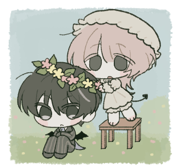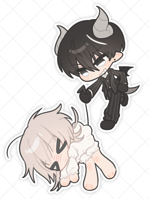 둘이 너무 다른 느낌의 캐릭터라 다른 분위기로 그려주셔도 괜찮습니다! 자유롭게 그려주세요!!