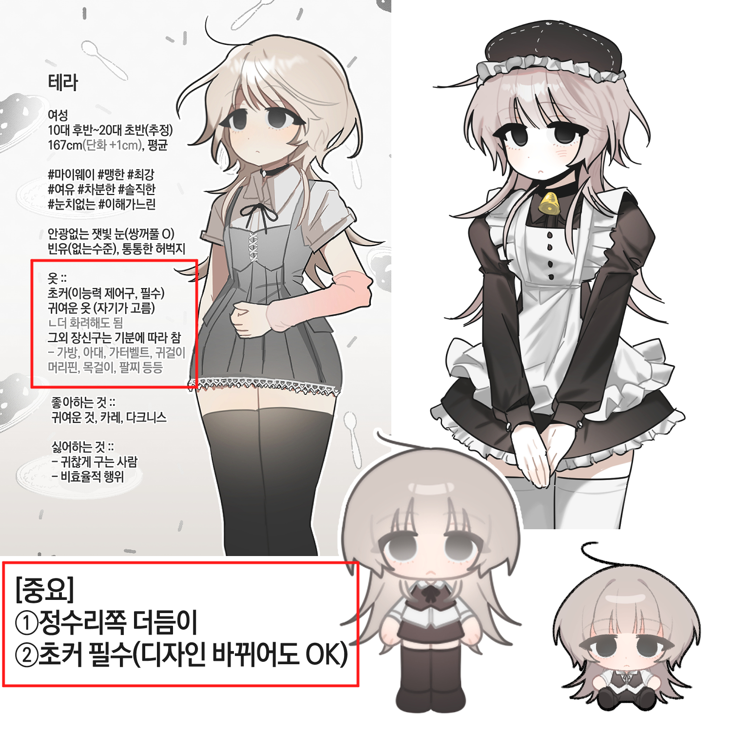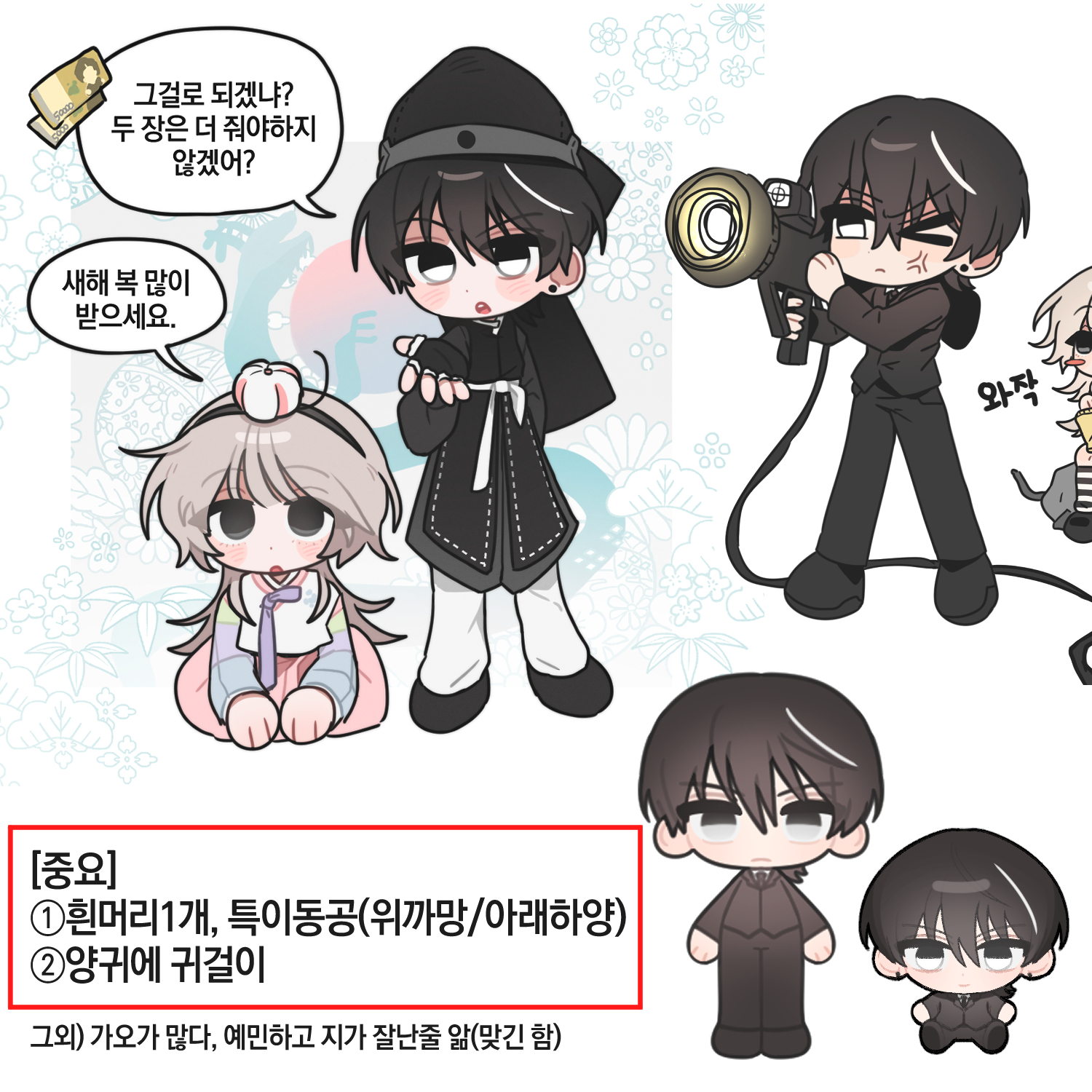 - 두 캐릭터 모두 악세서리 디자인 바뀌어도 됩니다 ^_^!