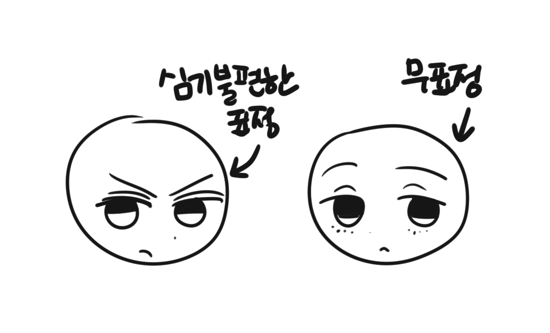 - 표정: 남캐 - 뚱함 / 여캐 - 뵤함 (아래 이미지 참고해주세요!)
